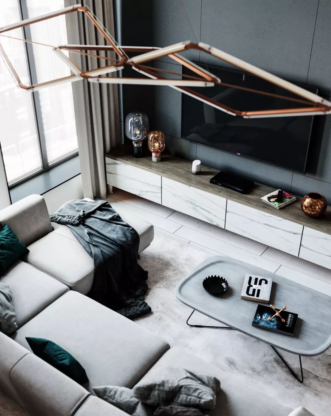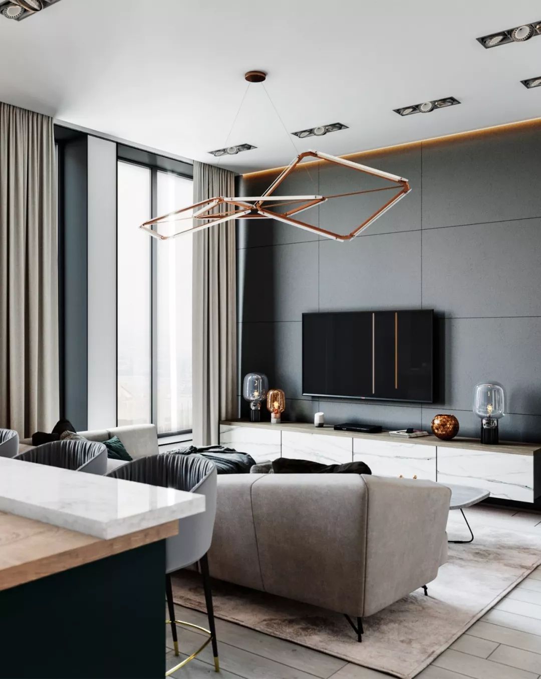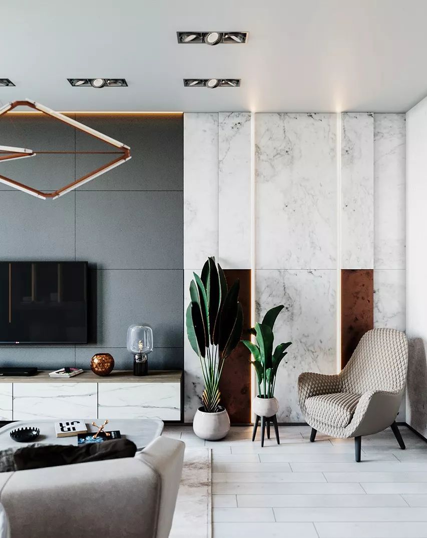 怎么樣?看完以上效果圖是不是十分震撼,迫不及待想要自己也裝修這樣的風格呢?空間大面積運用大理石和輕質材料,從材質上就將檔次提升,雖然面積不大,卻給人十分奢華的視覺效果。